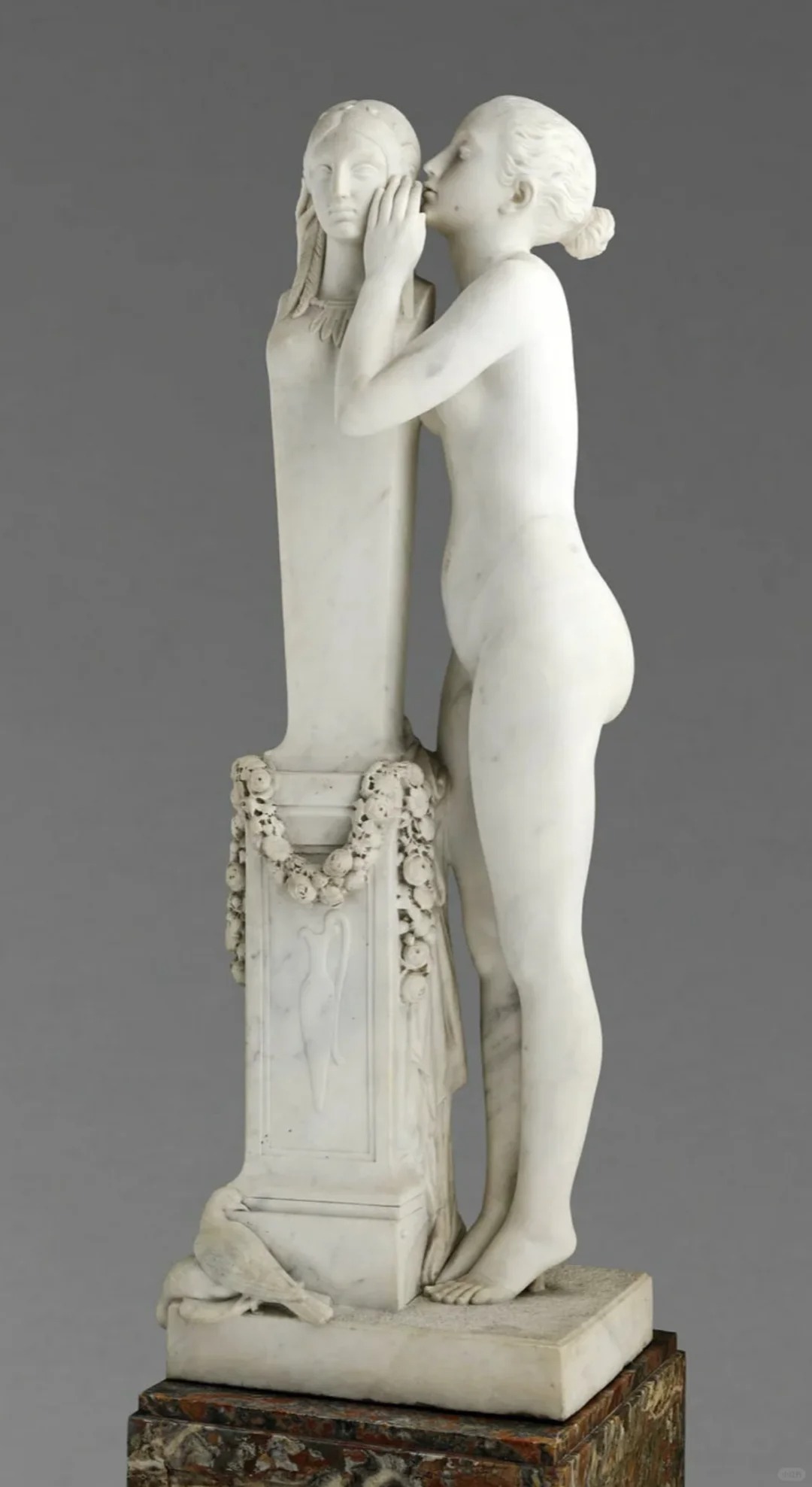 • 据说,博西奥创作这幅作品的灵感来源于古希腊神话中维纳斯作为爱与美的象征。他希望通过少女向维纳斯倾诉秘密的场景,展现人类情感中最真挚、最温柔的一面。这种情感的传递不仅让作品充满了生命力,也使其成为新古典主义雕塑中的经典之作。