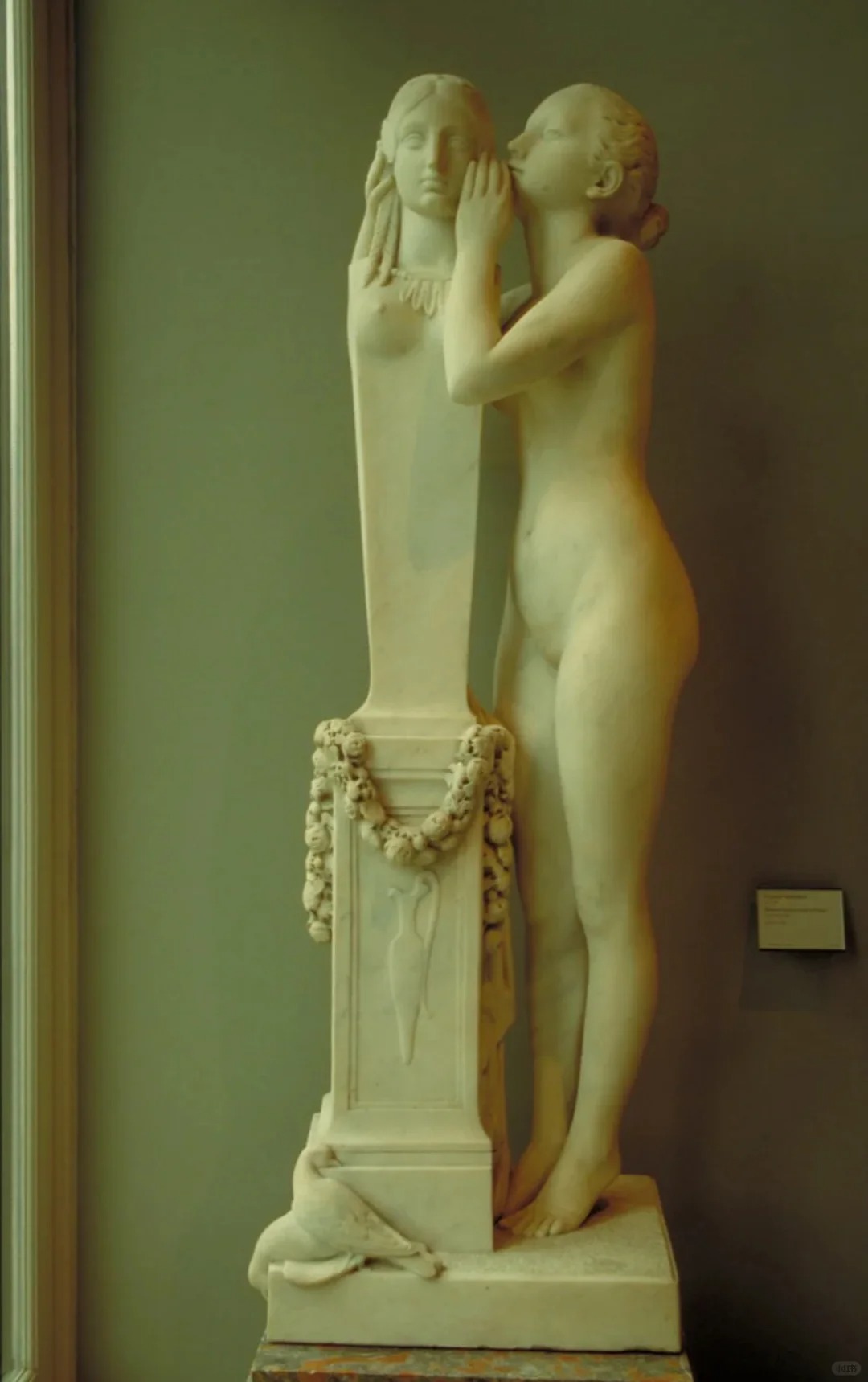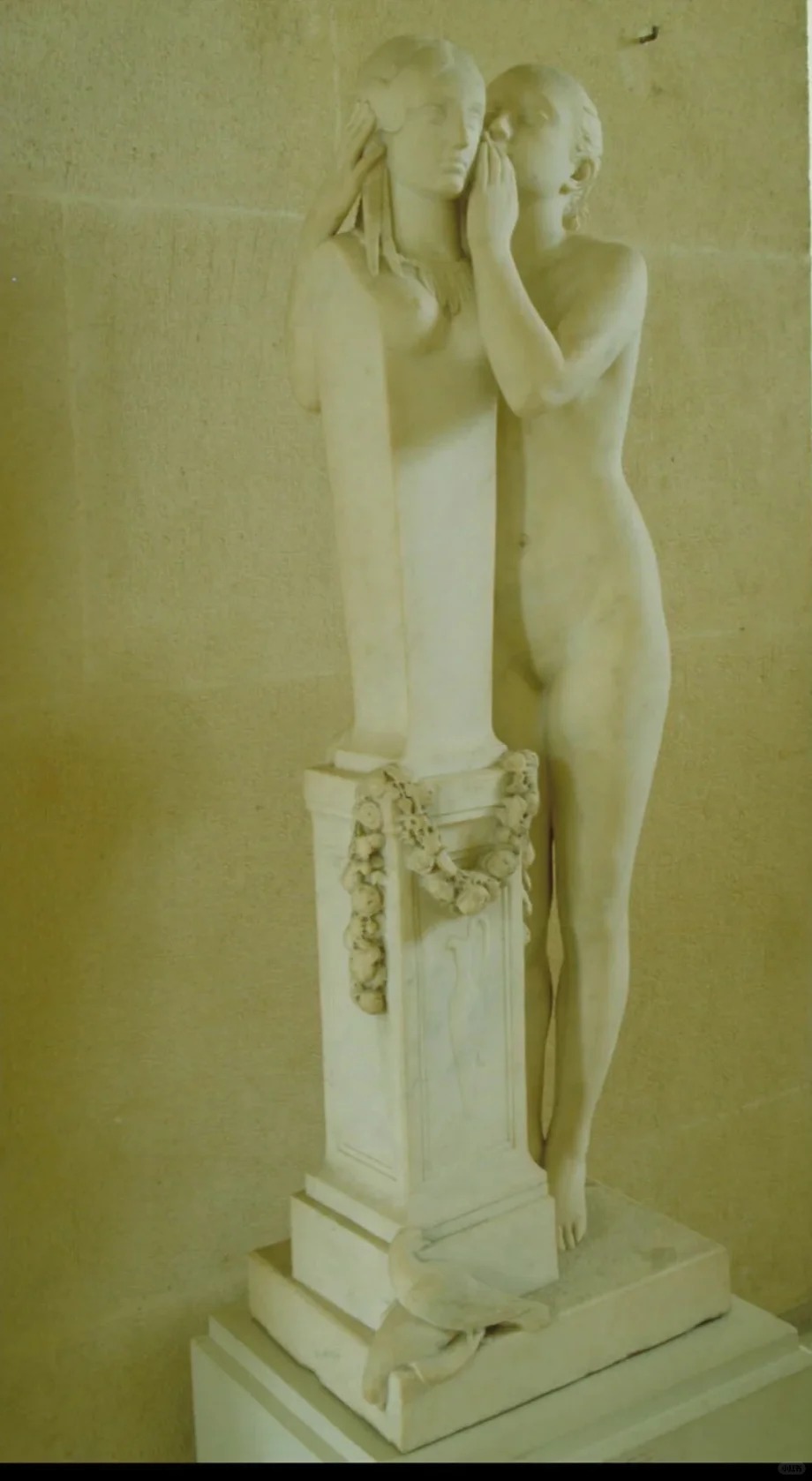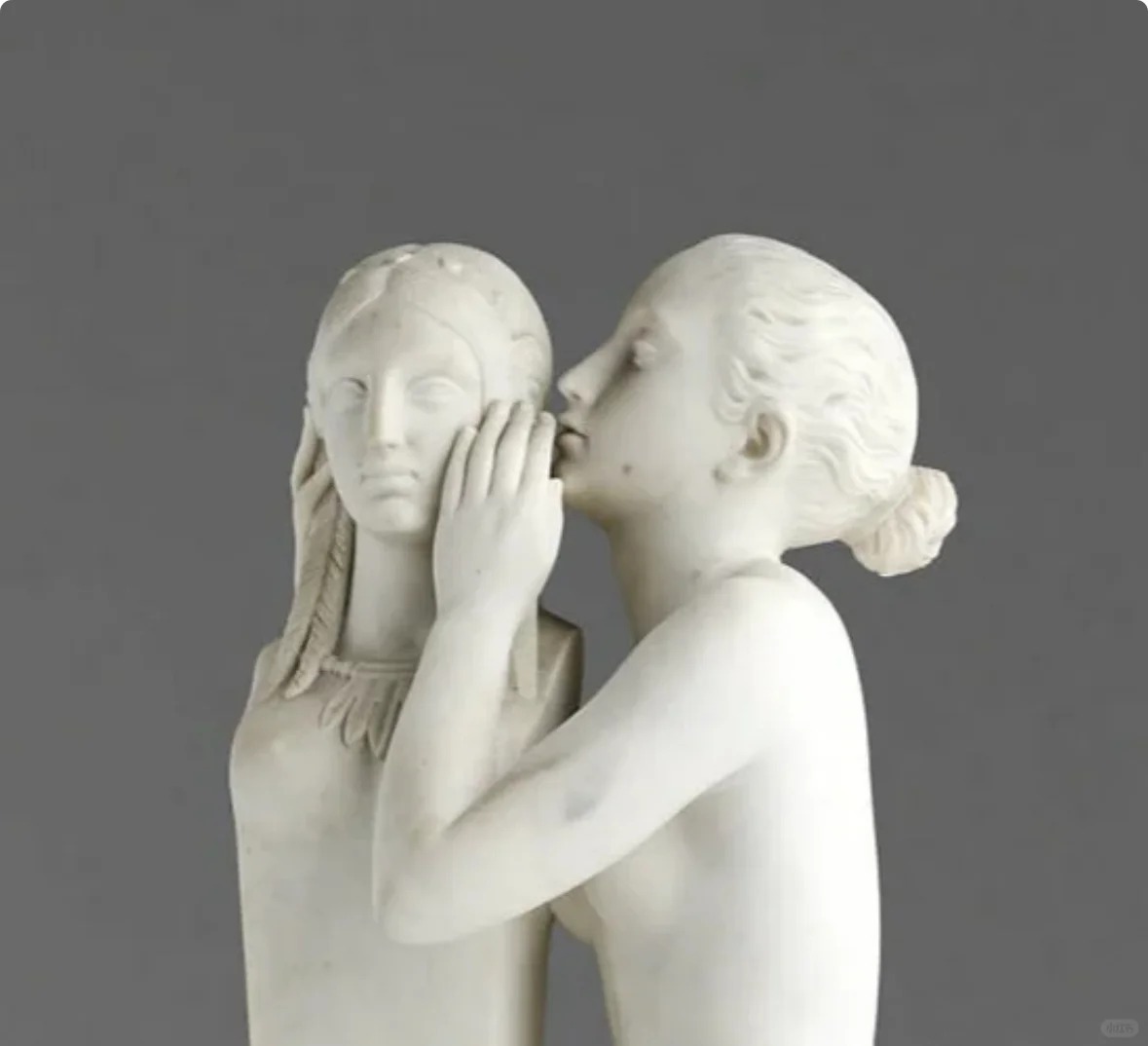 • 人物刻画:雕塑中,一位少女正向维纳斯倾诉秘密,维纳斯的姿态优雅,微微俯身倾听,展现出一种母性般的温柔。少女则显得羞涩而紧张,这种对比突出了人物之间的情感交流。